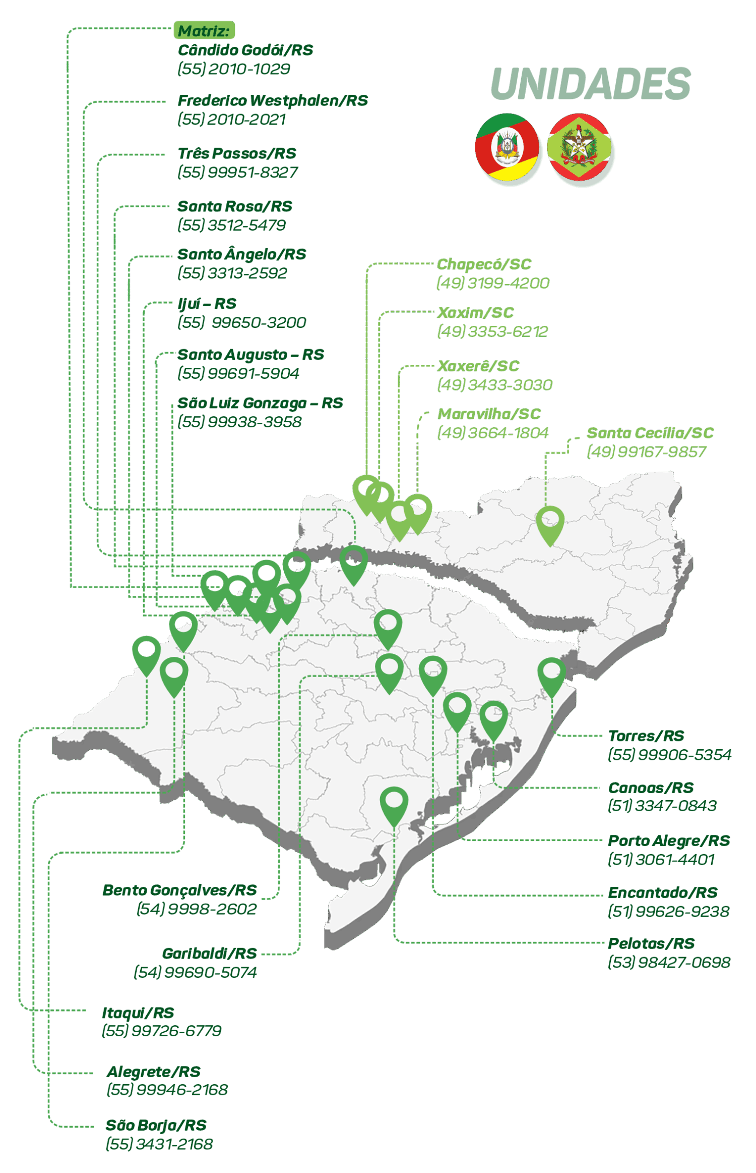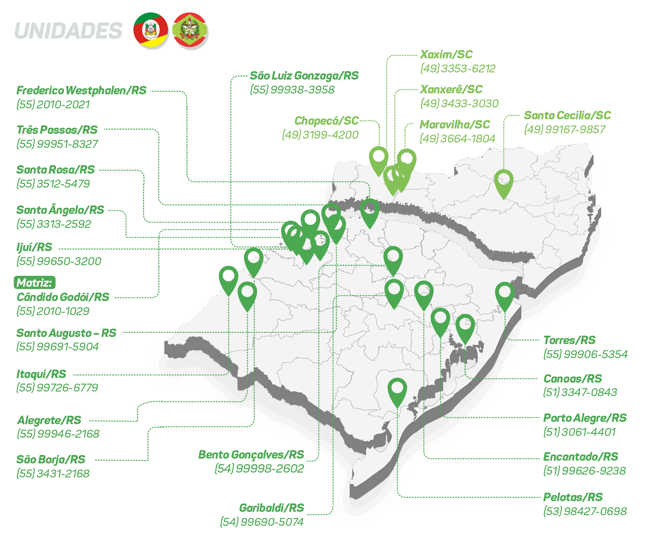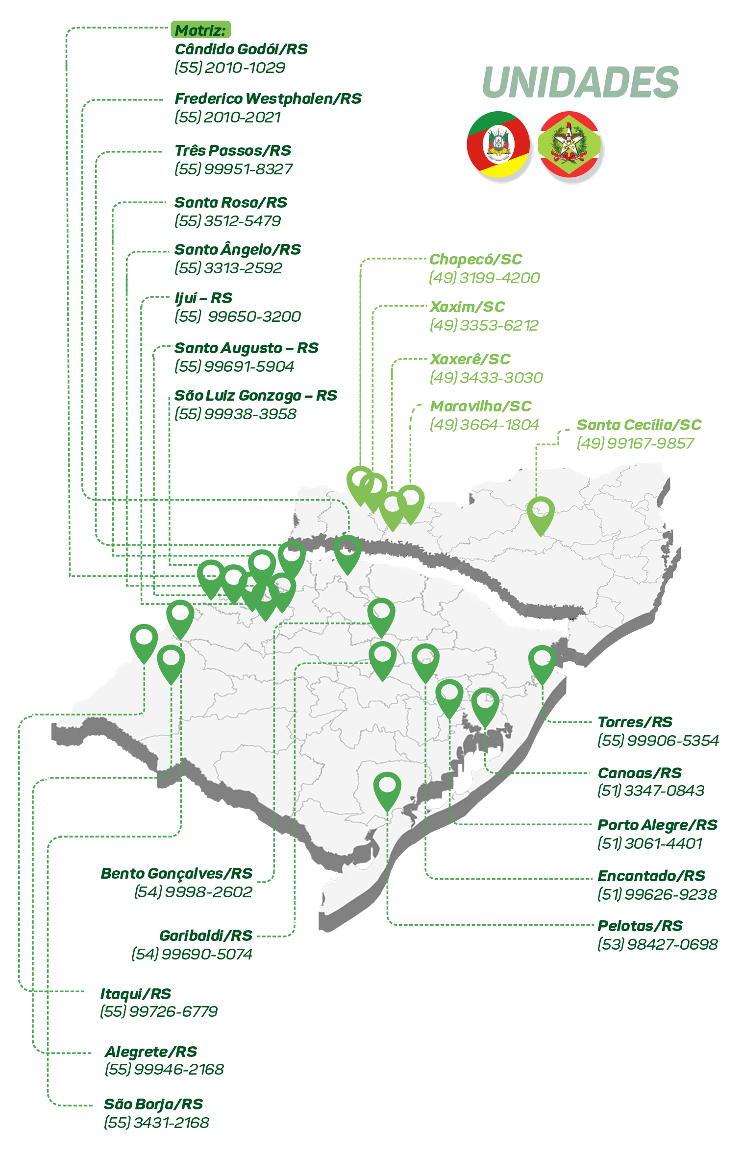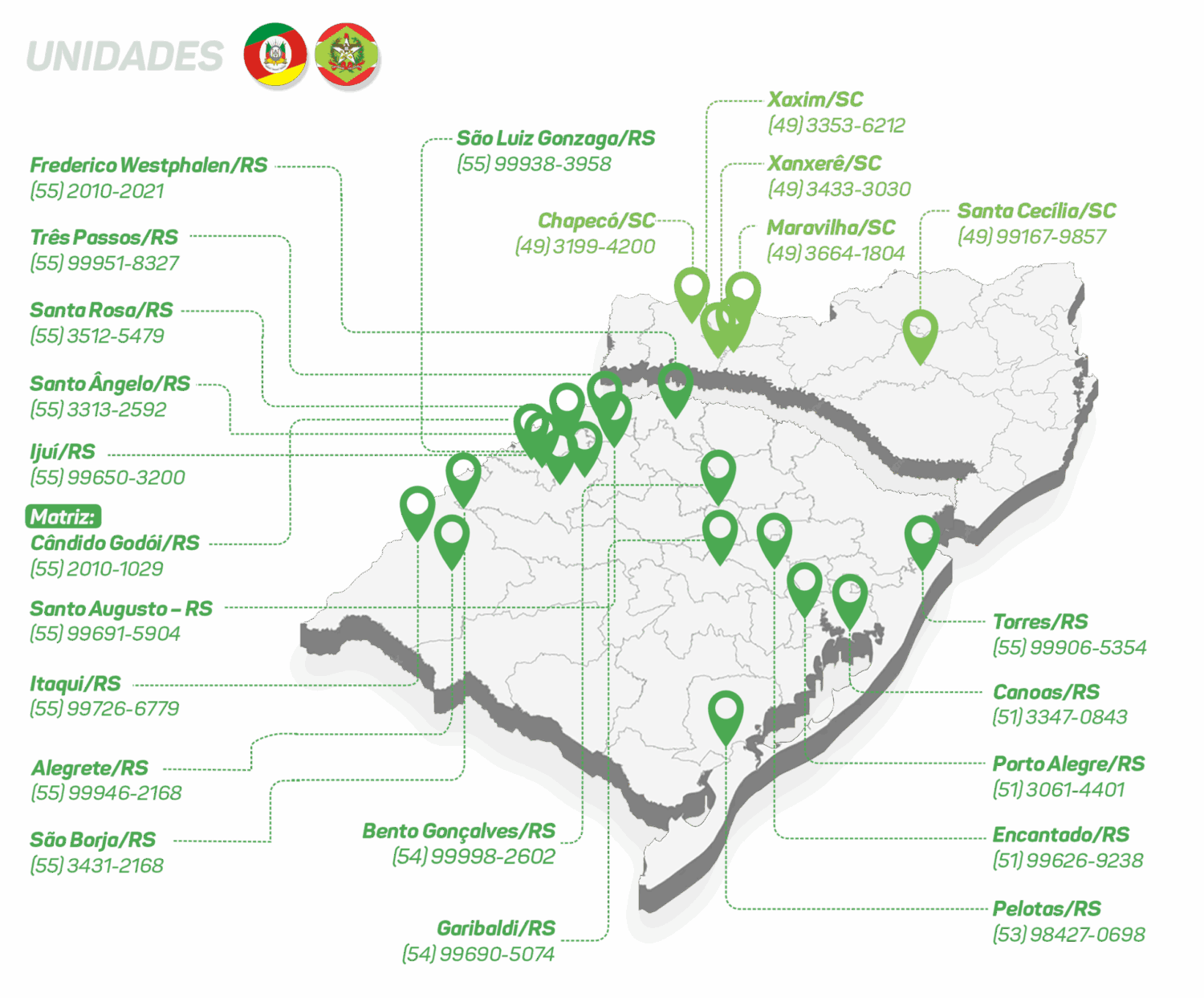 Somos uma empresa com anos de mercado atuando com excelência, com 21 unidades espalhadas pelos estados do Rio Grande do Sul, Santa Catarina e Maranhão, com uma equipe qualificada sempre pronta para novos desafios e resultados excepcionais.